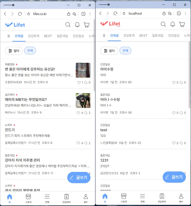 라이펫 Q/A 리스트 해결